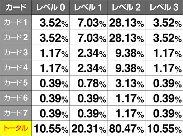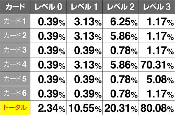 レベル3は村岡の招待(カード4)が当選しやすいため、何セット目に当選したかで、ある程度シナリオを推測できる。