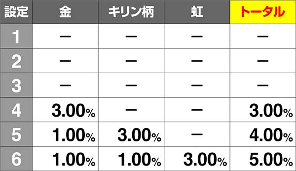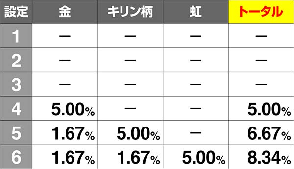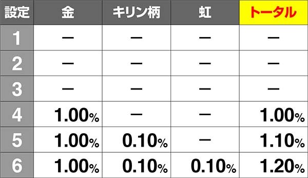 出現率は当日の総ゲーム数に応じて変化し、7001G〜8000Gがもっとも出現しやすい。