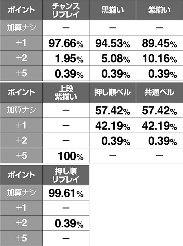 非有利区間中なら設定差のないBIG(入賞時に有利区間ランプが点灯)でのみ、有利区間中なら設定差の有無不問で抽選される。