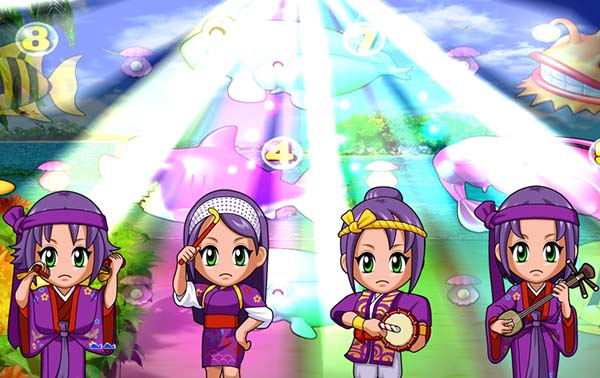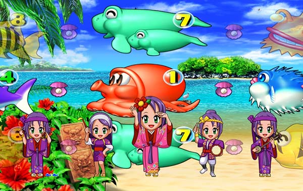マリンちゃんの手招きで集まってくるキャラの種類と数に注目。