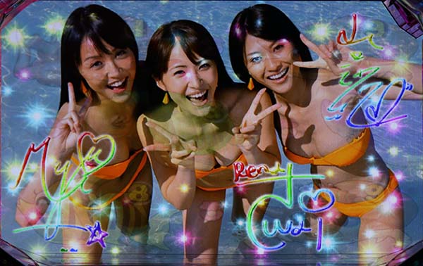 エイサー娘が画面に迫ってくる奇数図柄大当り濃厚のリーチだ。