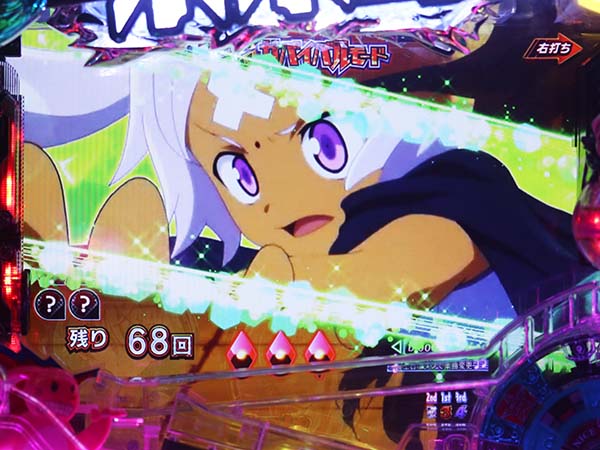 突入後は連続演出が発生し、背景の色が赤になるまで継続すると大チャンス。