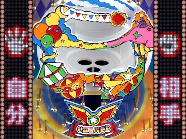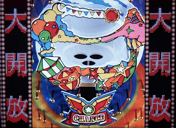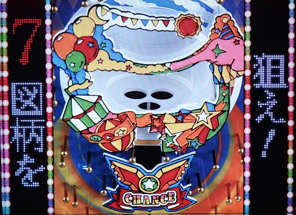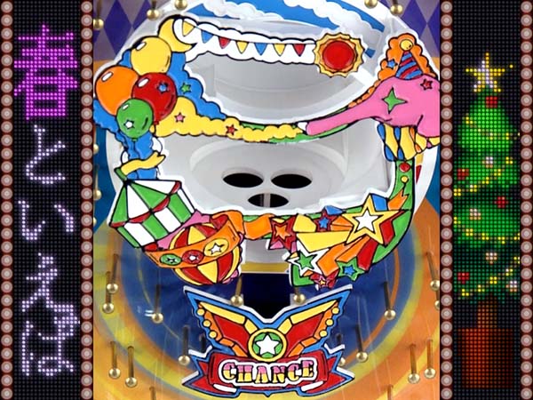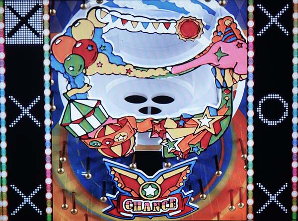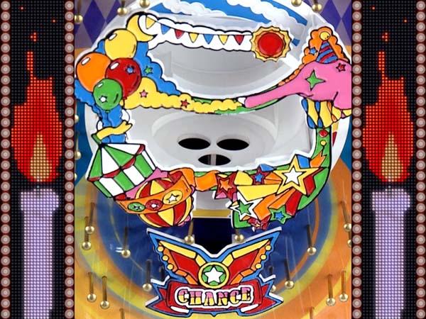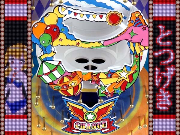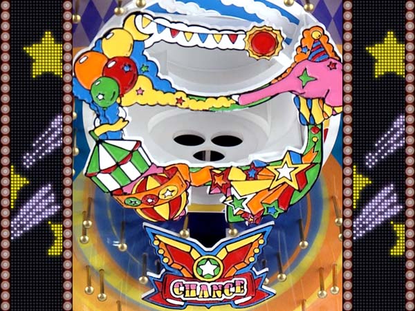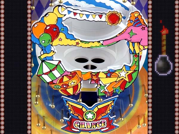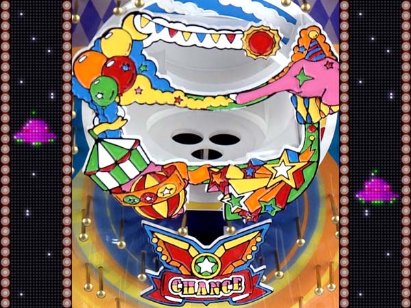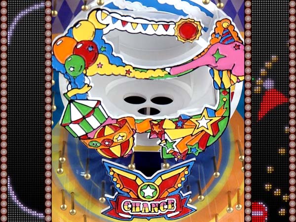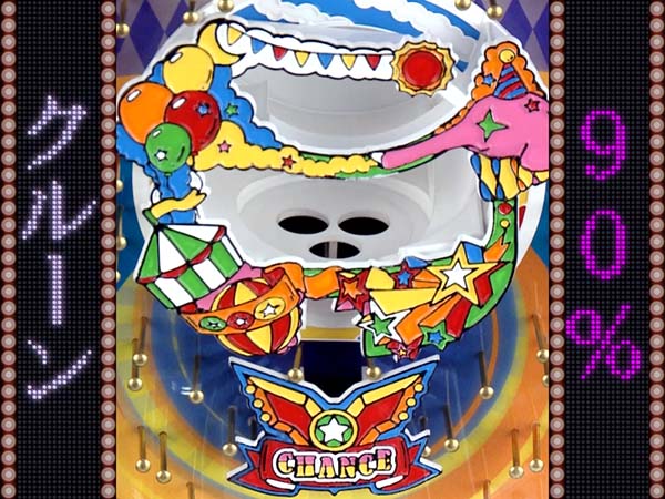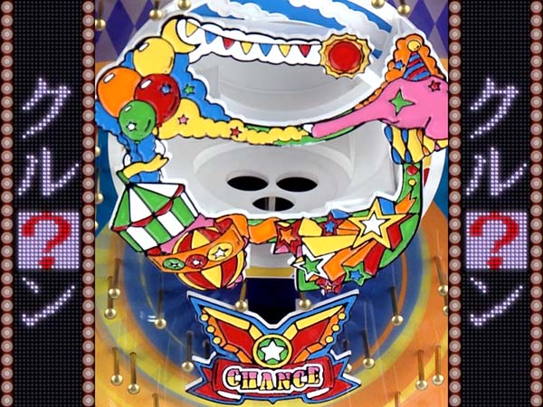 まず、液晶右側でパチンコ玉がクルーンへ入るかどうかの演出(一発入魂チャンス)をおこない、入ればチャンス。
