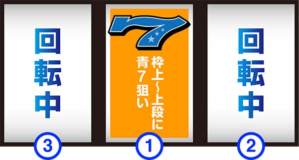 基本の停止形である青7下段停止時は、中右リールをフリー打ち。