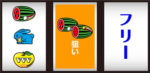 弱・強スイカと弱チェリーが内部的に同一フラグ(3枚役)のため、打ち方に応じて停止形が変化。
