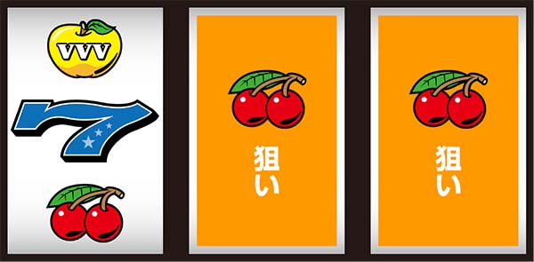 右リールをフリー打ちし、左リールにチェリー(青7を目安)を目押しすればレア役をフォローできる。