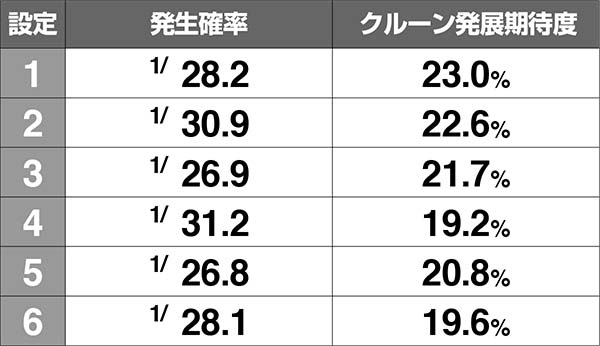 ●一発入魂チャンスの発生率&クルーン発展期待度