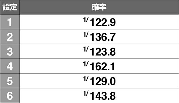 チャンスベル(斜めベル)確率は高設定ほど優遇されており、設定6は1よりも約3.5倍も出やすい。