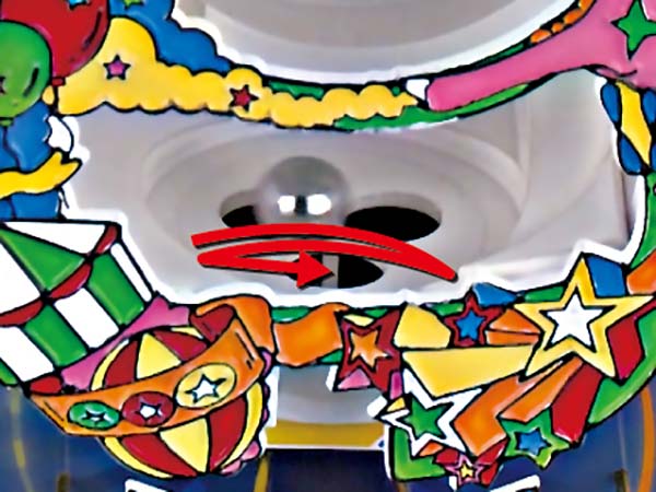 一発入魂チャンスはパチンコ玉がクルーンへ入るかどうかの演出。