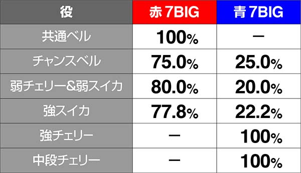 BIG終了後は必ずARTに突入し、青7BIGはラウンド振り分けが優遇される。