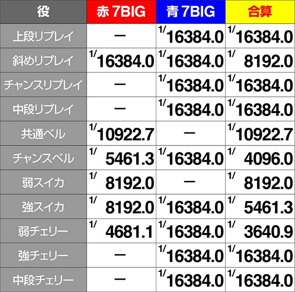 BIGは赤7と青7の2種類あり、いずれも毎ゲームフリー打ちで約276枚獲得できる。