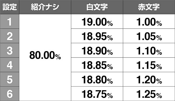 演出紹介は毎ゲーム20%で発生抽選をおこない、文字色が赤なら高設定期待度アップ。
