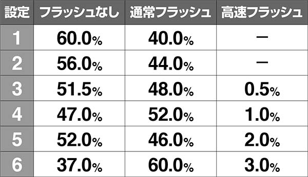 リール下にある中パネルが消える時に点滅するランプの色で設定を示唆している。赤なら設定4以上の期待度アップ、虹なら設定6が確定。