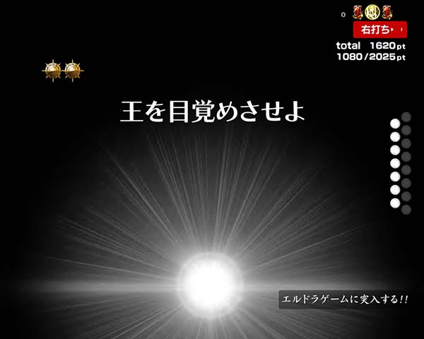 ラウンド中はフェイスオブ王演出が発生、ボタンPUSHで王が目覚めればエルドラゲームに突入。