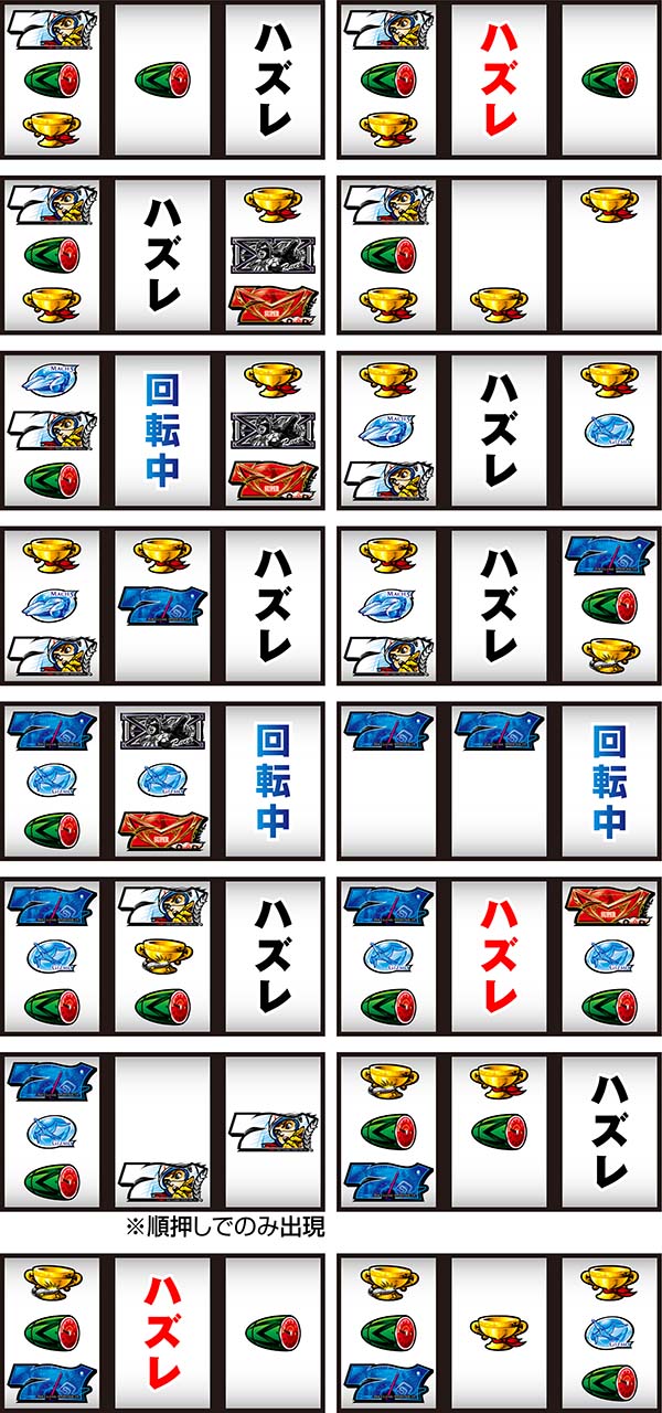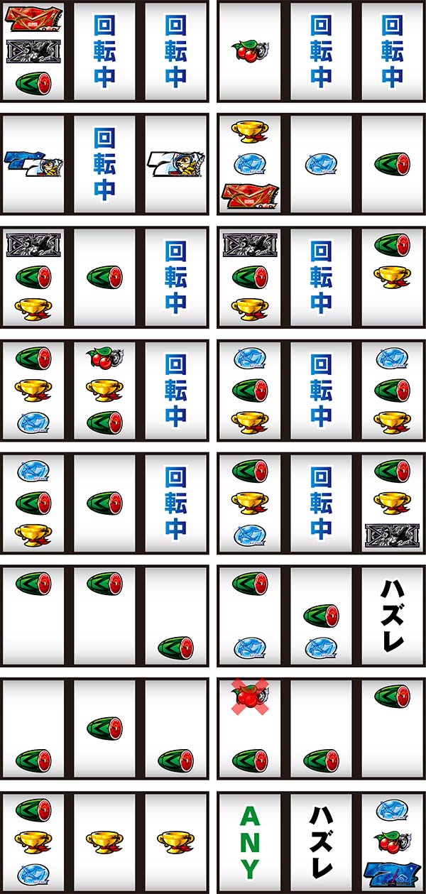 実戦上、この停止形からのスイカは確認していないが、スイカテンパイ時は念のため中リールにもスイカを狙おう。