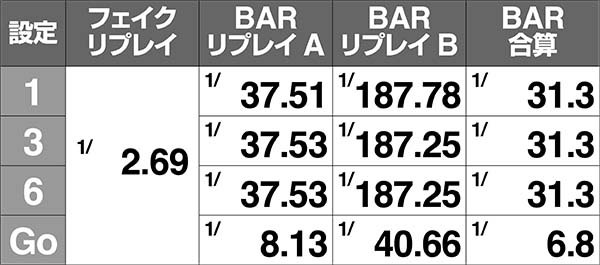 BAR揃い確率には大きな設定差があるため要チェックだ。