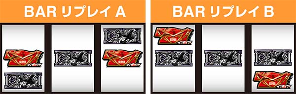 チャージリプレイAは右上がり、チャージリプレイBは中段に、確定役は下段にBARが揃う。