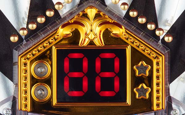 伸るか反るかの大勝負!! ヘソに入賞するとデジタルが変動し、数字が揃うと羽根が開放。羽根に拾われた玉が、2つの役モノを突破できれば大当りというゲーム性だ。初回大当り後にGGGランプ点灯で15R+時短突入が濃厚となり、時短に突入すれば実質連チャン濃厚。1度で約4200個の出玉を獲得できるうえに、2回目の大当りが時短付き(電チュー経由10%)ならば一撃で約6300個の出玉を獲得できるぞ! |