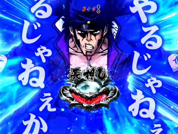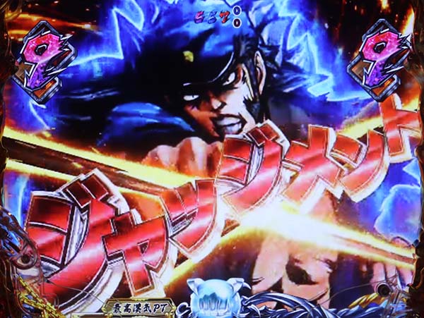 頂JUDGE中の大当り時に発生する昇格演出で、ボタンを長押しするとセリフが発生。
