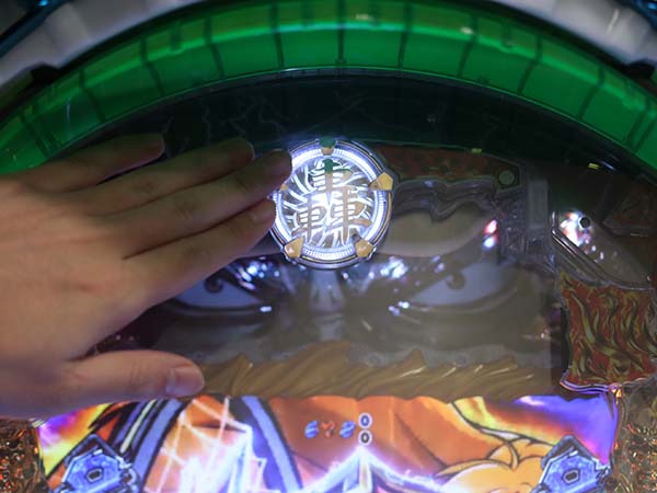 V入賞時にボタンを押すと台枠のイルミランプが点灯。