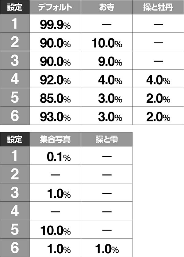 集合写真のみ、設定1でもまれに出現する可能性があるため要注意。