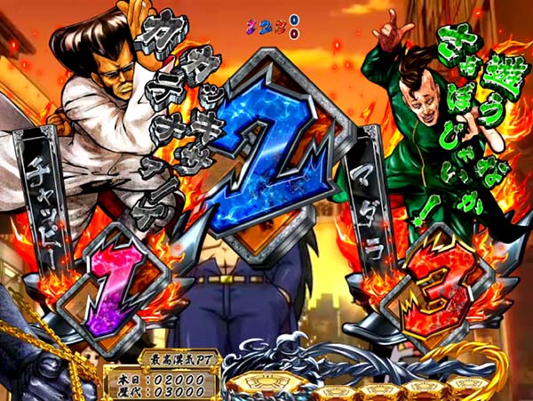 大都技研の設定付きパチンコ第1弾!! 一撃約3000個(実質3セット・払い出し)の出玉獲得を可能とした漢気あふれるスペック。「頂JUDGE」での引き戻しが勝利のカギを握り、最大4回転で約1/6を引ければ出玉約2000個。2個の保留が大当りに当選していれば約3000個獲得濃厚と、現役最高峰の一撃性を誇る。 通常時は特訓を経由し大当りを目指す番長シリーズの王道パターンを引き継いだ演出もポイントだ。 |