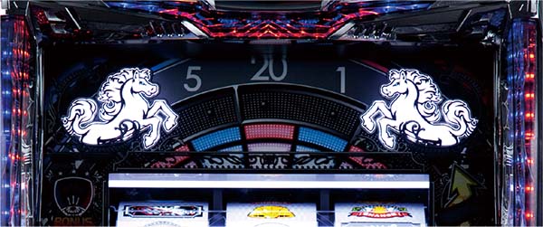 ネットワークでダーツが楽しめる「DARTSLIVE」の臨場感を再現したボーナス+RTタイプ。 ボーナスはBIG・REGの2種類で、終了後に突入する5G間のCZでRTを目指すゲーム性。 RTのゲーム数はCZ中、狙え演出発生時の光ったラインに停止したBAR(BULL)の数で告知され、1個なら25G・2個なら50G・3個なら無限となる。 各演出にダーツの面白さが随所に盛り込まれているところも魅力的だ。 |