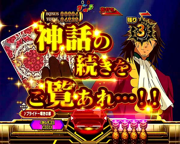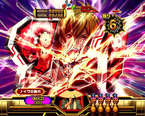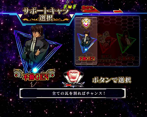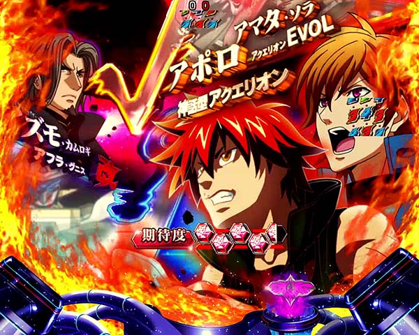 1種2種混合タイプのライトミドルスペックに変貌を遂げ、2体のアクエリオンの最終決戦が幕を開ける!! 初当り後に突入する最終決戦での大当りが連チャンゾーン「アクエリオンRUSH」突入のメインルート。アクエリオンRUSHは時短7回転と残り保留4個の最大11回転で、トータル継続率は約80%となっている。 自分好みのモードとサポートキャラを選んで、1万2千年級の大連チャンを築き上げよう!! |