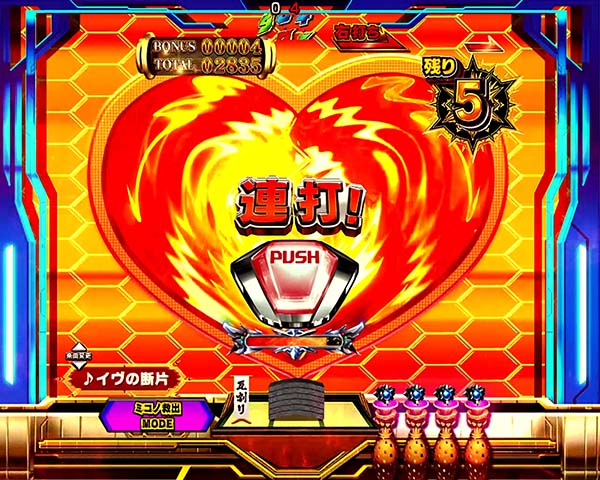 リーチ後のボタンPUSHから突入するハートアイコン獲得特化ゾーン。
