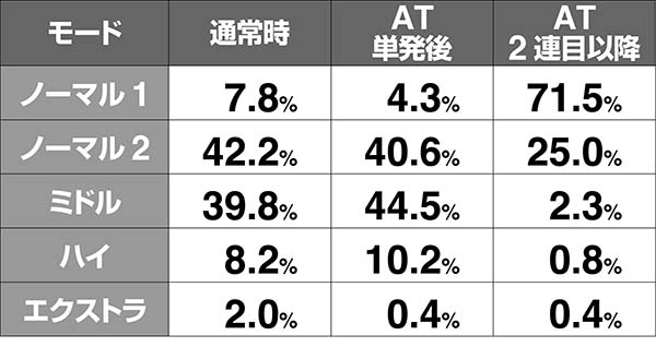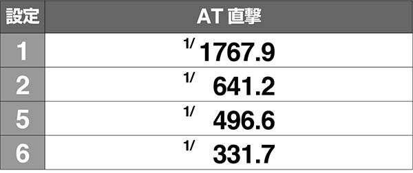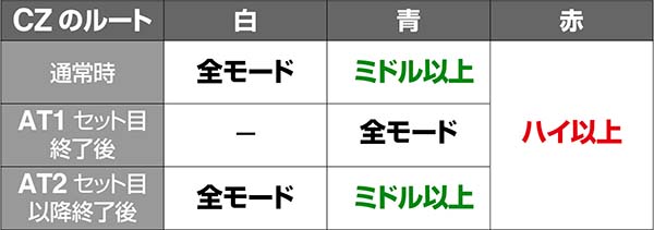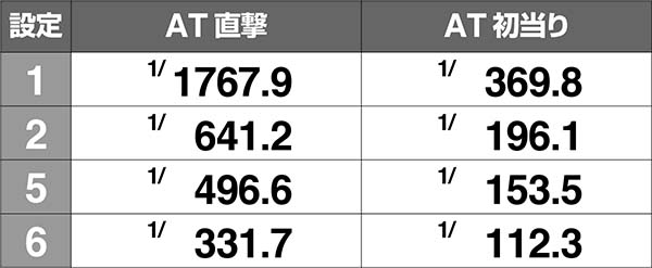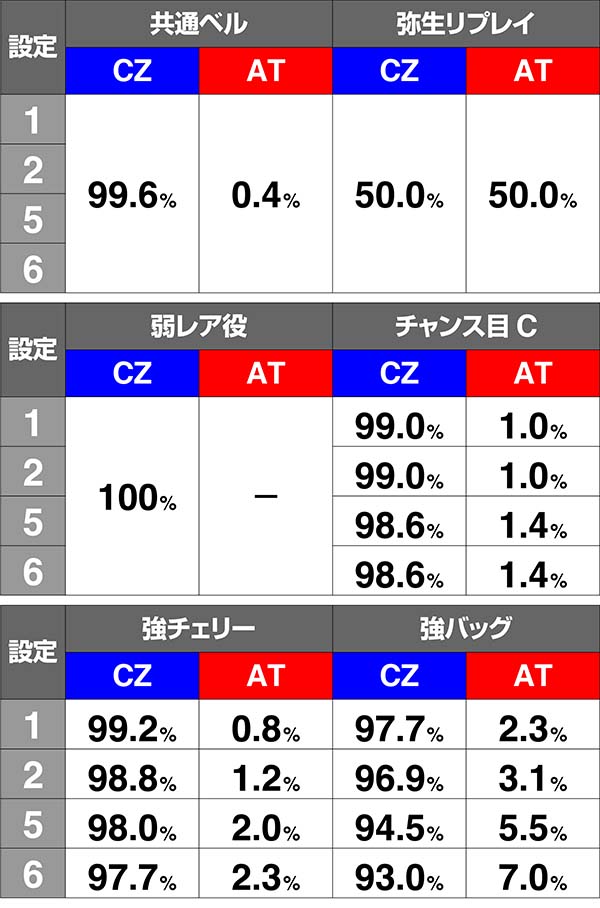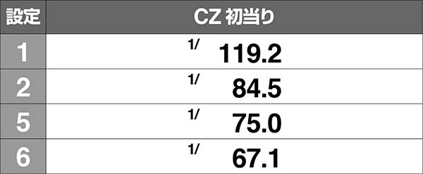 AT初当りと同じく、CZ確率も高設定が大きく優遇される。