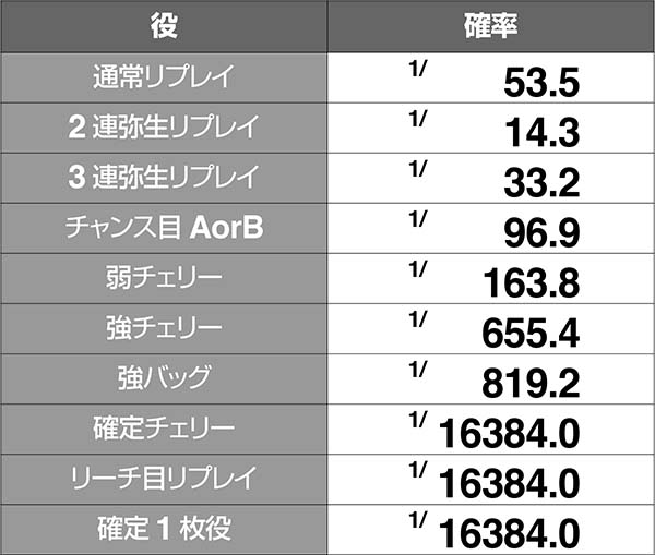 見た目でわかりやすいレア役との同時当選確率をチェックすることをオススメする。