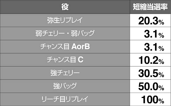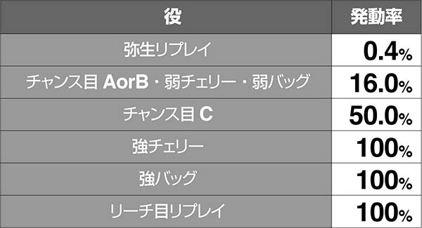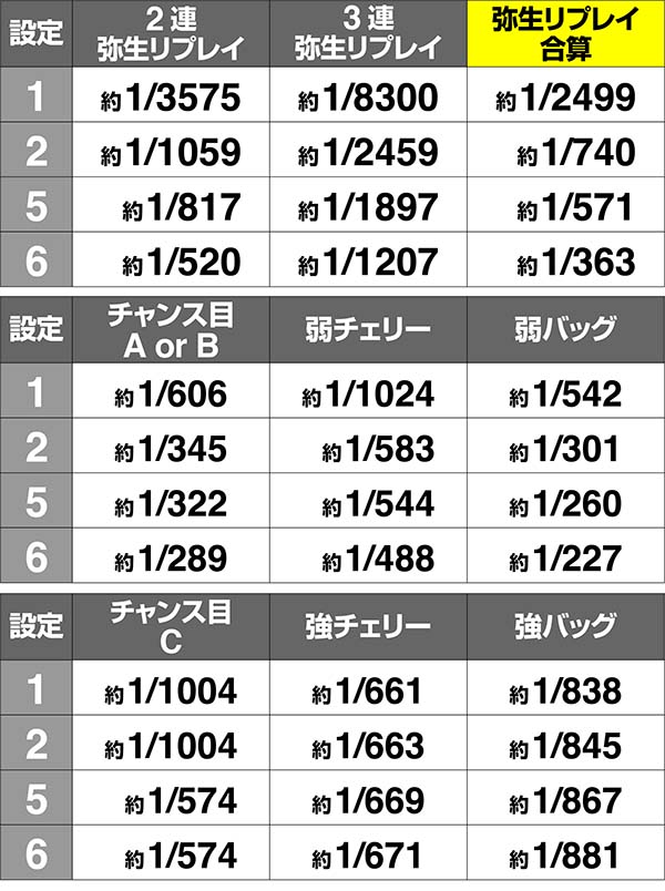 ※弥生リプレイは内部的に成立する確率なので揃う確率ではない