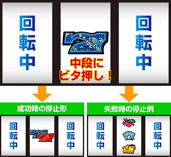 中リールに止まった7絵柄と同じ7絵柄を左右リールに狙おう。
