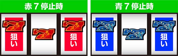 ビタ押しに失敗して7絵柄が止まらなかった場合は、左リールで赤7or青7の2択当てにチャレンジ。