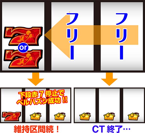 CTを77G消化した時に維持区間に滞在していれば23Gのご褒美タイムへ突入(CT状態)。