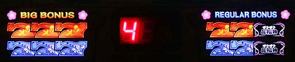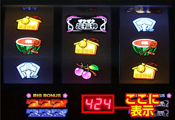 ベル揃いの回数はリール下のセグ(カウンター)に表示される。