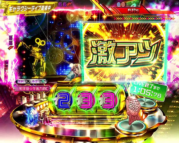 シリーズの第3弾は約2240個の16Rを搭載したドデカルチャーな1台!! スペックは通常大当り後に必ず時短100回転がつく確変ループタイプ。電サポ中の演出は歌姫たちとパチスロの演出を楽しむライブモードと3つの異なるバトルを搭載したバトルモードの2種類から選べるファンも納得の仕様だ。 通常時は発生する予告や展開、発展するリーチを示唆するクォーツをいくつストックできるかがキーポイントとなる。 |