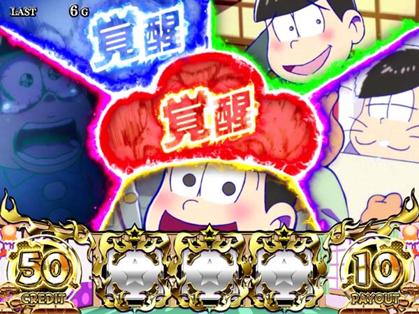 カウンターは、“お・そ・ま・っ・く・す”の6つがあり、32G以内のBIGで1つ点灯する(32Gを超えるとリセット)。