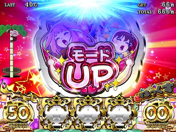 消化中はリプレイやハズレ、レア役でモードアップを抽選。