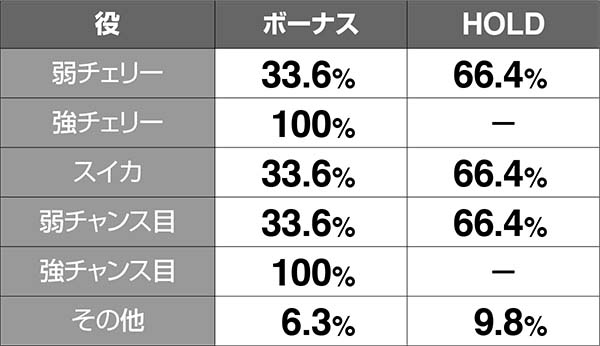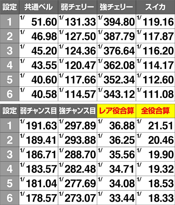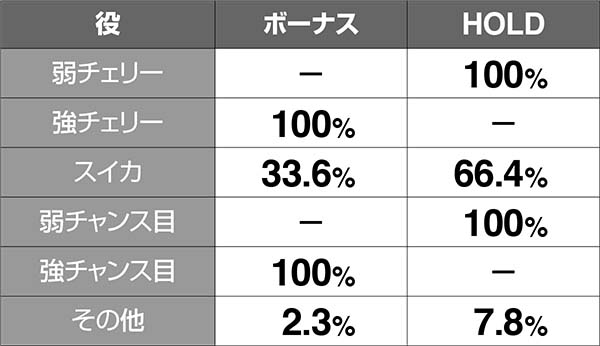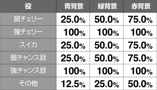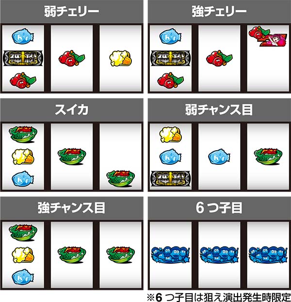 ハズレ<弱チェリー<スイカ<弱チャンス目<強チャンス目<強チェリー