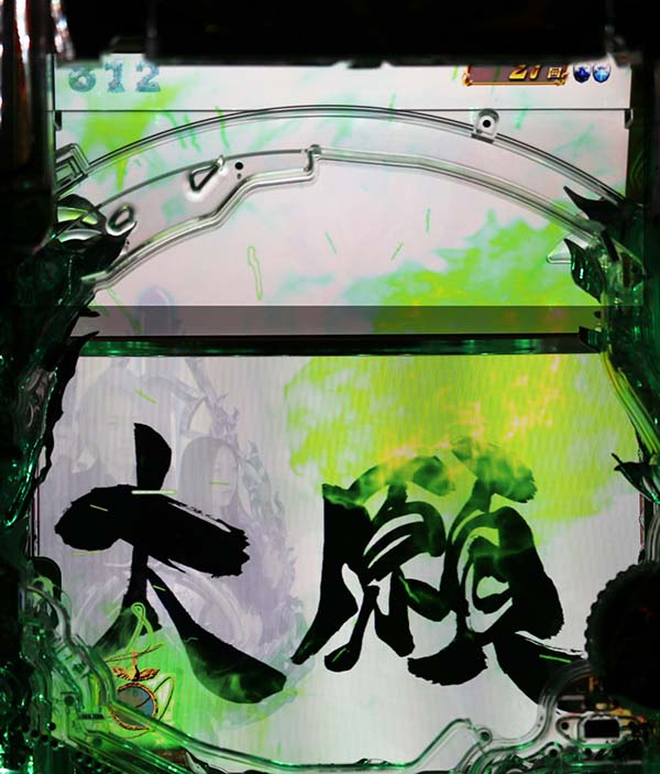 ボタンPUSHで3D透過液晶にアイテムが出現。牙狼斬馬剣やP.F.O.G.翔なら大チャンス!