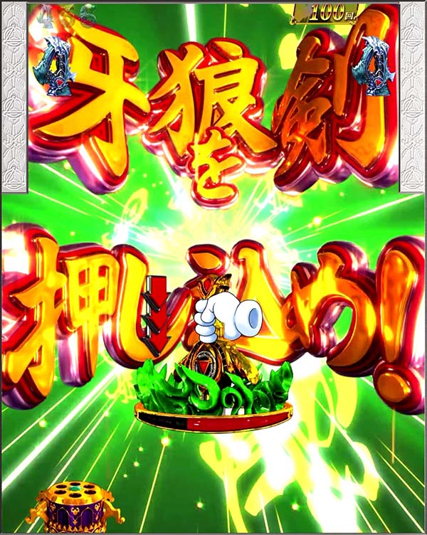4曲目まで継続すると牙狼剣を押し込め演出に発展。