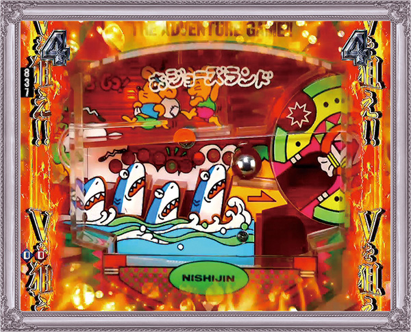 西陣の歴史を築いてきたレジェンドたちが積年の眠りから目覚める! ラプソディにジャスティと、全14種類の実在する羽根モノ機が登場。液晶機でありながらV入賞のハラハラドキドキを体感できる演出が見所となっている。 スペックはV確STタイプとなっており、大当り後には必ず電サポ100回転が付く仕様。ST50回転と時短50回転をあわせた継続率は約73%と、大連チャンにも期待が持てる1台だ。 |