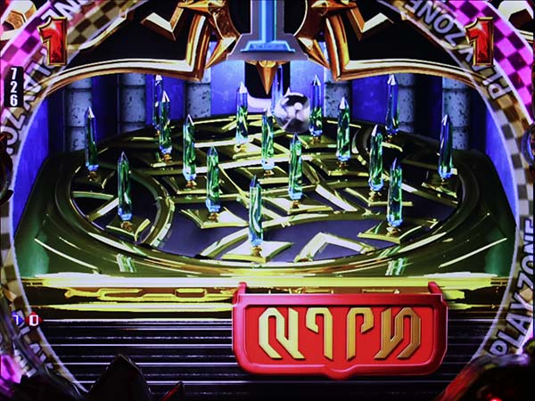 上段ステージに入賞した玉が3つ穴の回転体を突破できれば大当り。