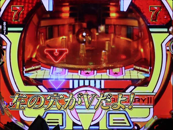 5穴回転体のV穴が左側を向いているときに、玉が飛び込めば大当り!?