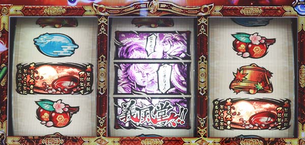 義風役B(1枚)は小役狙いだと引き込めないが、おもにリーチ目が停止する。