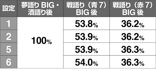 戦語りBIG経由の場合は20G以内に突入リプレイを引くことができればRTに突入し、赤7揃いよりも青7揃い後の方がRTに移行しやすい。