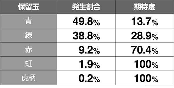 ●保留玉の発生割合とボーナス期待度