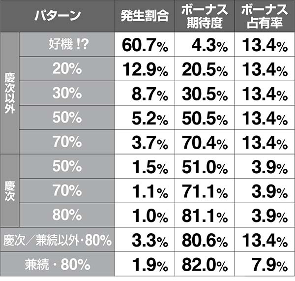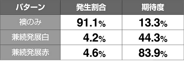 ●発展時のパターン別・ボーナス期待度