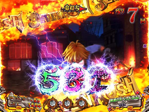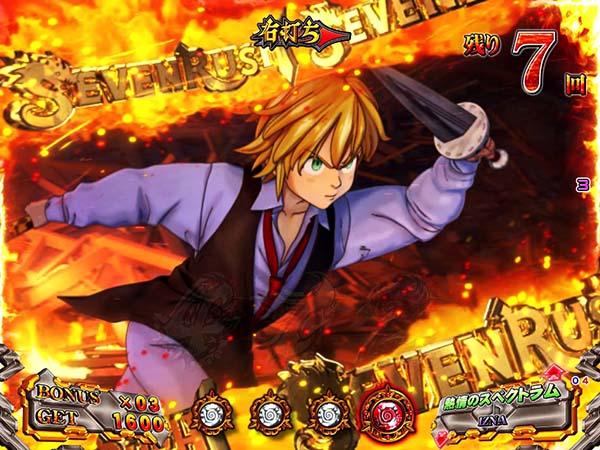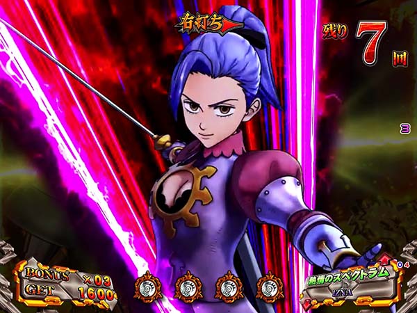 右打ちのトータル継続率は「強欲」の名にふさわしい約90%!! 出玉増加のメイン契機となるSEVEN RUSHは初当りの50%で突入。時短回転数は7回転と99回転の2種類があり、99回転は実質連チャン濃厚だ。 RUSH中はバトルが発生し、勝利できれば10Rを手にすることができる。 SEVEN RUSHと引き戻しゾーンの全反撃チャンスを活かし、大連チャンを奪い取れ! |
